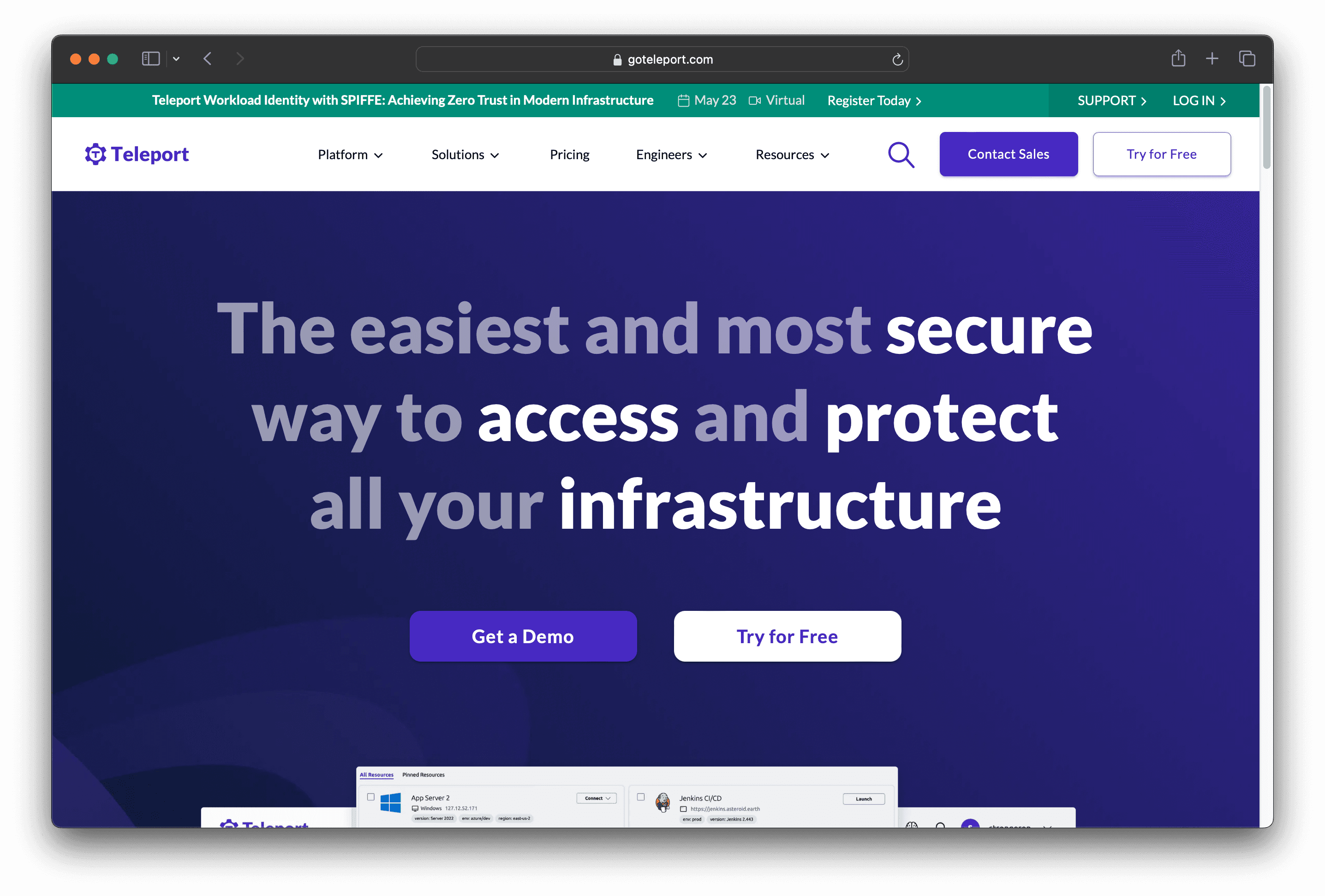 Teleport is a platform designed to provide secure and easy access to infrastructure. It offers features like cryptographic identity, zero trust access, and secretless authentication, aiming to simplify and enhance security for businesses of all sizes. Teleport integrates seamlessly with existing systems, ensuring a unified and efficient experience.