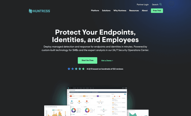 Huntress Managed EDR is a cybersecurity solution tailored for small and medium-sized businesses. It offers comprehensive endpoint detection and response, ensuring full visibility and rapid threat mitigation. With 24/7 SOC support and smart filtering technology, Huntress aims to provide robust security without overwhelming system resources.