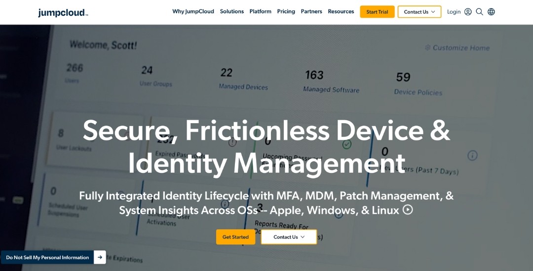 JumpCloud is a comprehensive IAM platform that provides cloud-based directory services. It enables admins to manage user identities, devices, and access in a single console.
