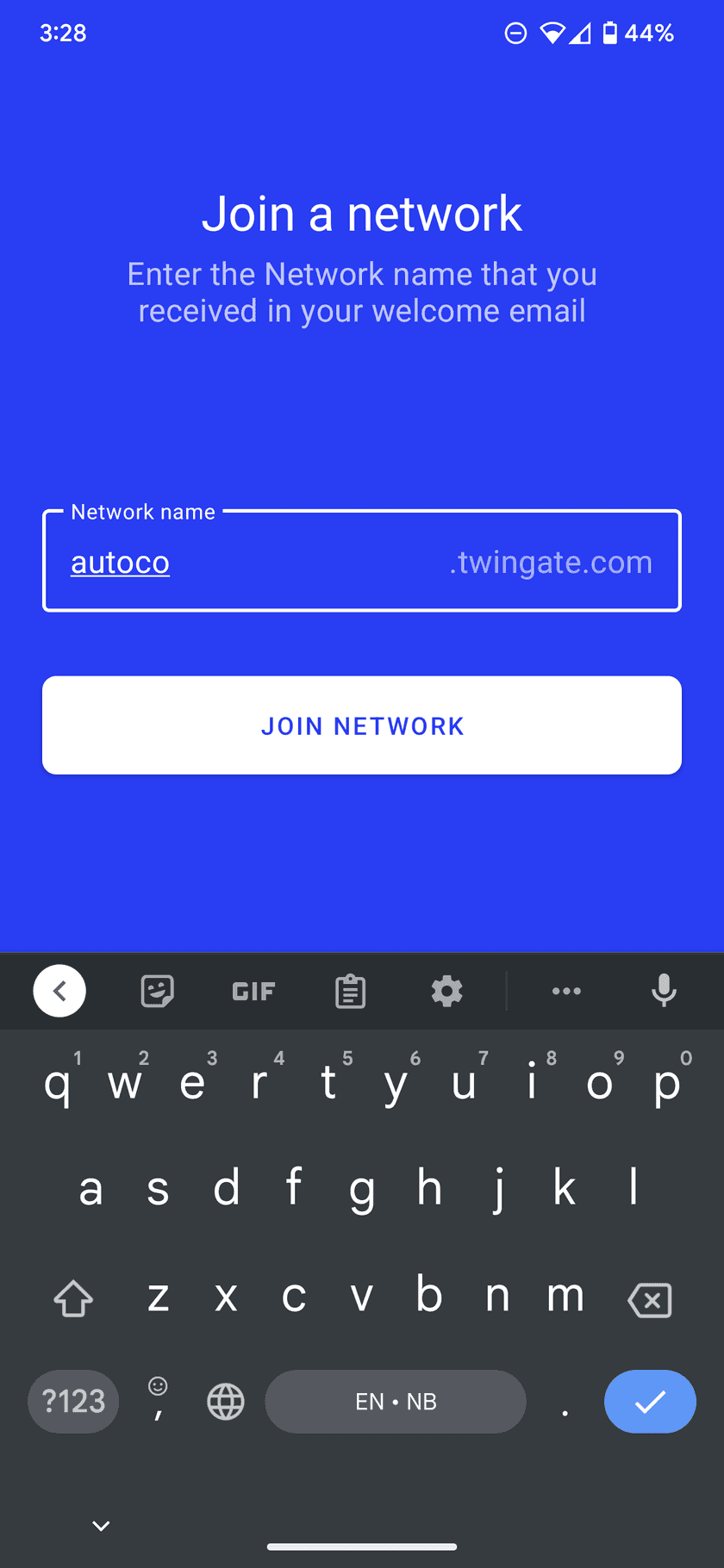 Open the Twingate app and enter the name of your Twingate Network.