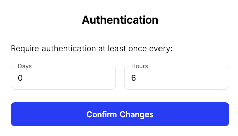 This rule allows you to set the frequency on which users must re-authenticate. For example, if a user attempts to access a Resource with an authentication rule set at 6 hours, if they have not authenticated in the past 6 hours, they will be prompted to authenticate.