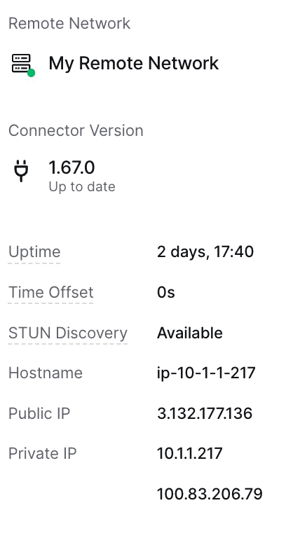 Twingate reports metadata back from Connectors to provide helpful information into the Connector’s status and the current machine it’s running on. Additionally, this information may help troubleshoot any potential issues.