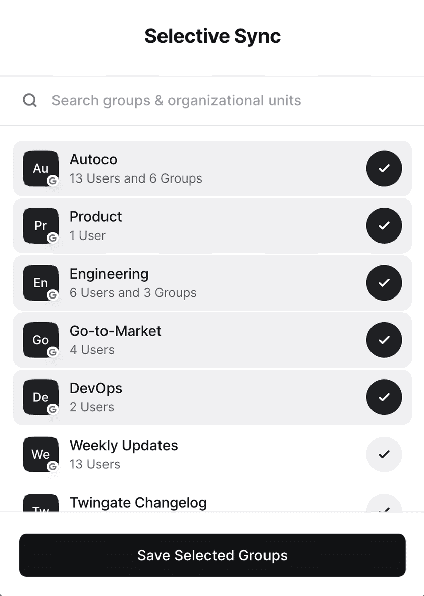 Select which groups and OUs you want Twingate to sync.
