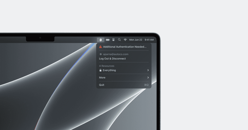 Now that your Twingate account is active and you have an active Connector, open up your Twingate Client on your device and sign in to connect. Then, click on the Twingate icon in your system tray or menu bar and you should see 0 accessible Resources there. This is expected because setting up Resources is the next step!