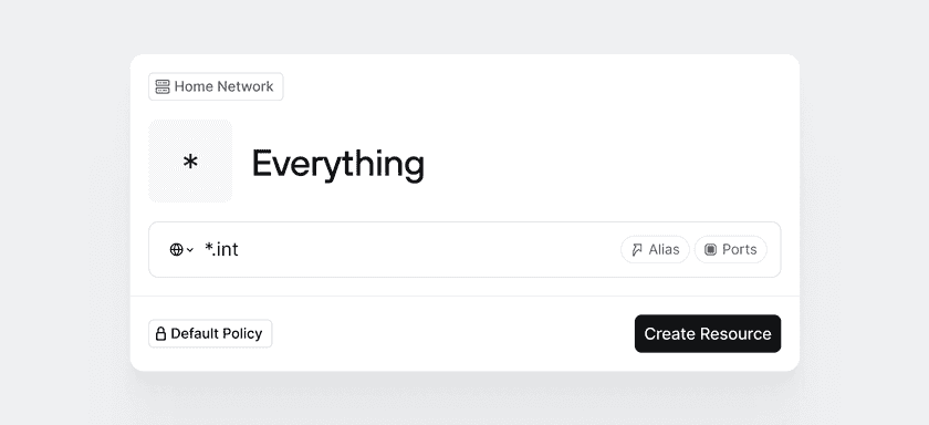 By the way, since we use a private DNS in our example home lab with domain int, we could have created the Everything resource using a DNS pattern instead of using a CIDR range: