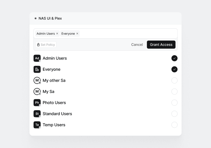 - Group 1: Standard Users (non-technical friends and family who need to access some of your services but will not (and should not!), for instance, ssh into your Linux server)