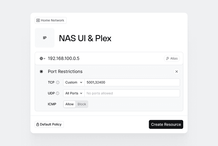 There is no strict requirement around the number of services defined in a single Resource. We could create a Resource for NAS - UI and a separate one for NAS - Plex. However, since both services are hosted on the same server and both services are available to the same Groups, let’s create a single resource for both services.