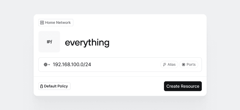 Give the Resource the label “Everything”. Since our router operates on a subnet with IP addresses ranging from 192.168.100.1 to 192.168.100.254, let’s select the CIDR option and enter the entire IP address range: 192.168.100.0/24: