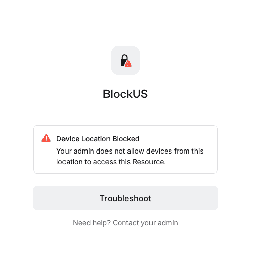 Devices blocked from accessing a Resource due to geoblocking will see the following error message.