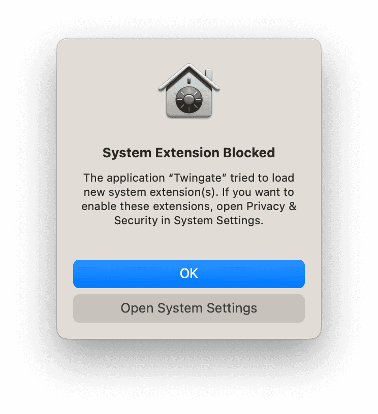 When first connecting to your network, you will be asked to enable a system extension. You must enable this system extension for Twingate to connect to your network.