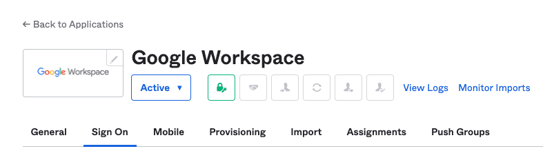 From the Okta admin console, navigate to Applications > Applications: