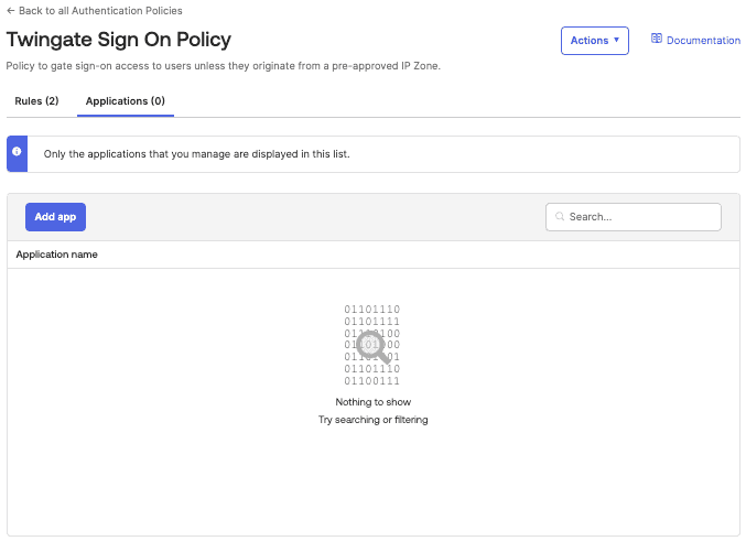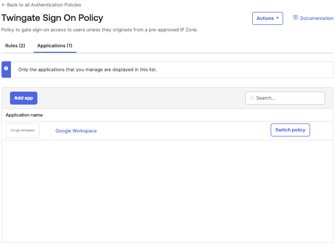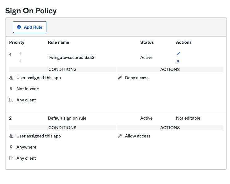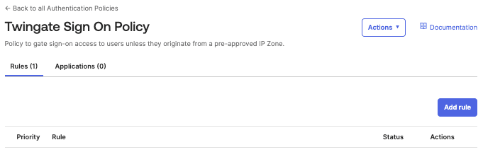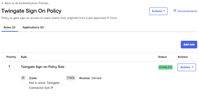 This will take us back to the Policy with our other rules and we should now see our new Twingate Sign-on Policy Rule.