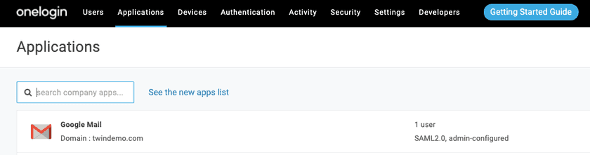 Within the OneLogin admin console, navigate to Applications → Applications and select the app you’d like to apply the OneLogin App Policy to (e.g. Google Workspace).
