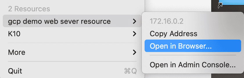 Next we can test the connection the web server over Twingate. To do this close your Twingate client if it is open, then re-open it. You should see the new resource as an option: