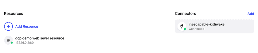 When the connection has been established it will be visible from the Twingate UI: