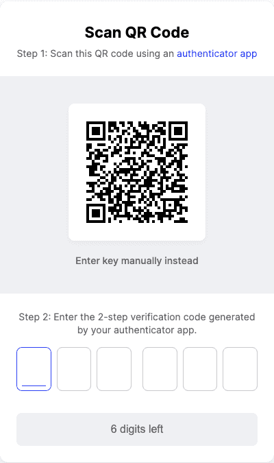First, add a new application in your authenticator app, then scan the QR code using your phone’s camera. If you are setting 2FA up from your phone, entering the alphanumerical ID instead may be easier. After you’ve set it up on your phone, confirm that everything is working correctly by entering the code that’s generated in the app.