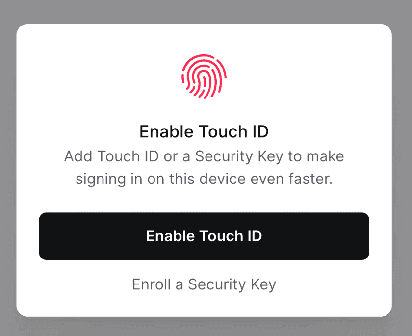 When selecting to enroll either a biometric method (e.g. Touch ID, Windows Hello) or a security key (e.g. YubiKey), you will be routed through the browser to complete registration. After registration is complete, you will be able to use these additional methods to meet the Twingate 2FA requirement.