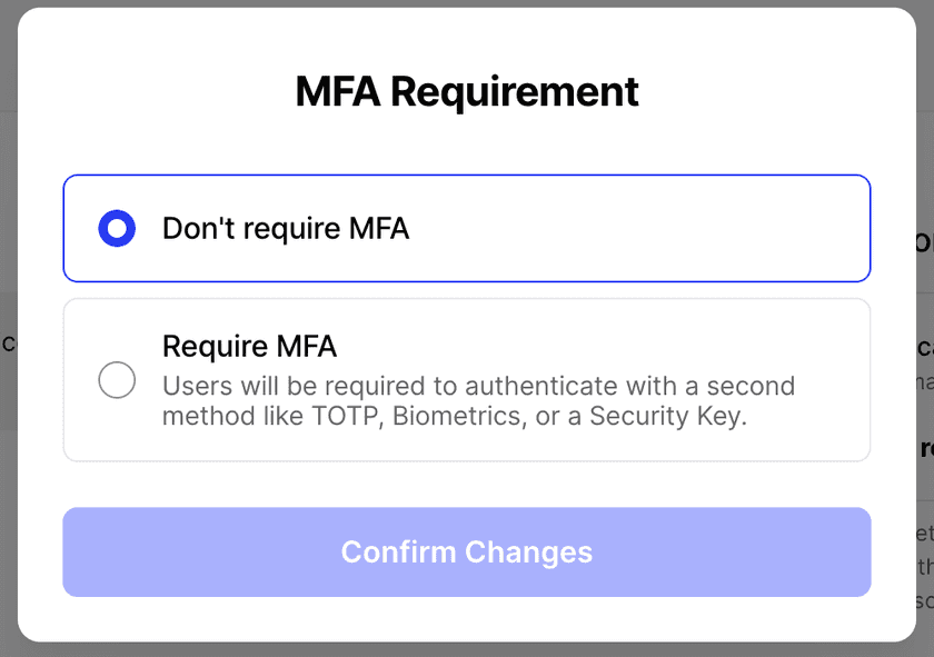 After setting up TOTP for 2FA, you will be prompted to set up either a biometric method or register a security key, both of which are additional options for meeting the Twingate 2FA requirement.