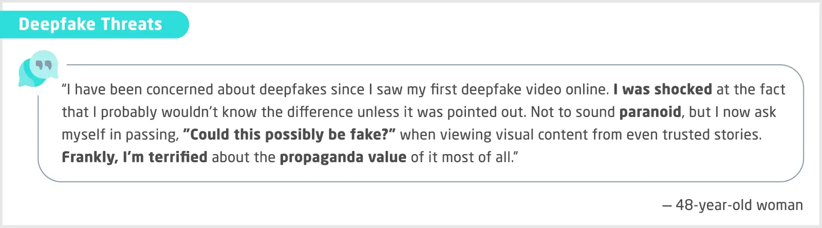 Companies like Facebook and Microsoft have taken steps to protect their users from deepfake content, but are the American people concerned? We surveyed 1,011 people familiar with this technology to understand how Americans perceive deepfakes.